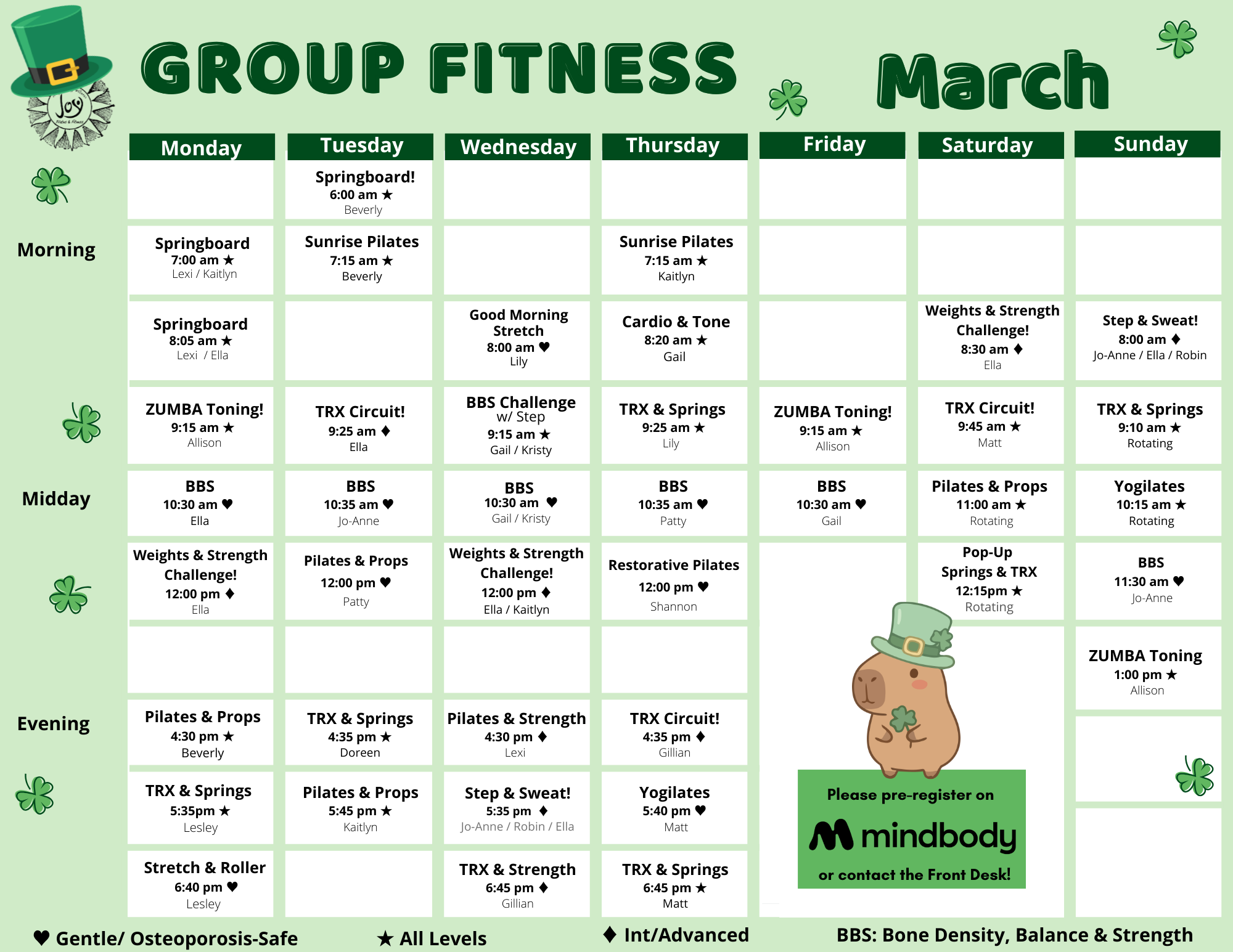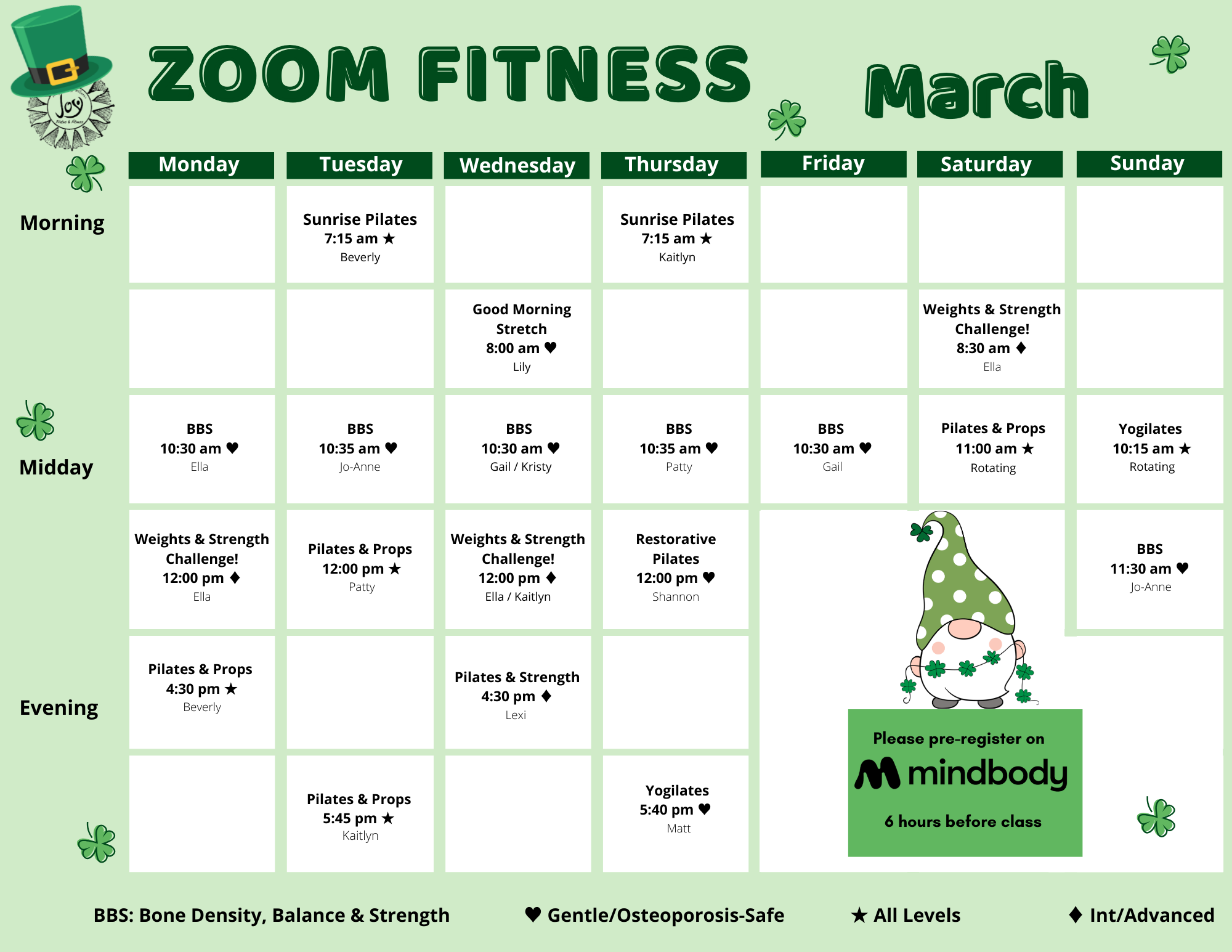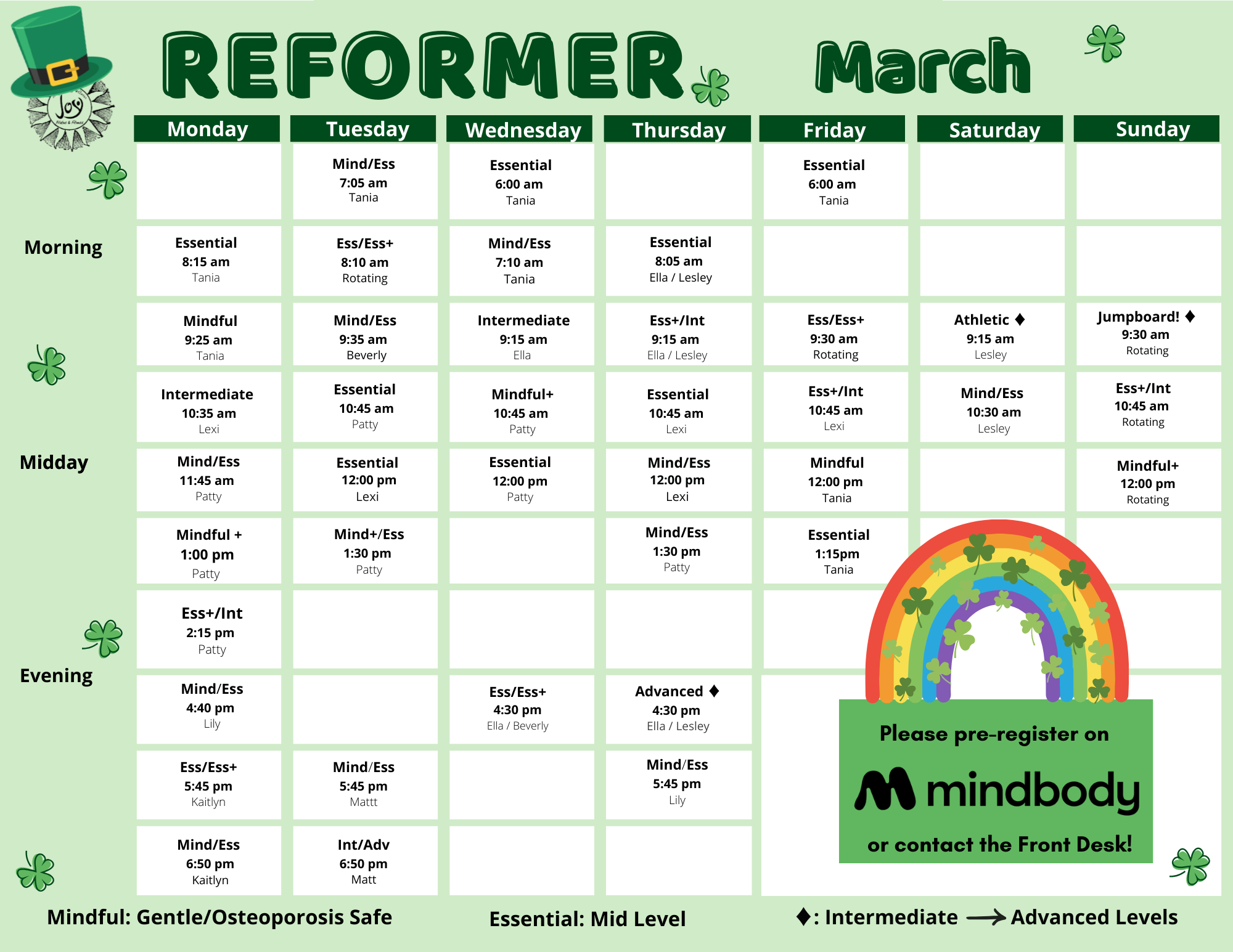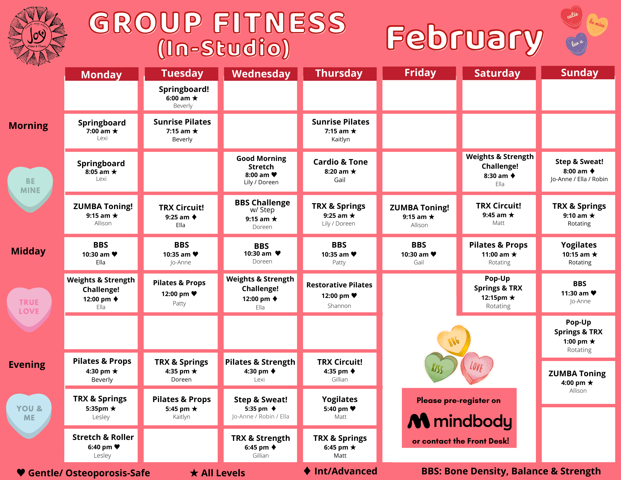 JOP IN-STUDIO CLASS SCHEDULES